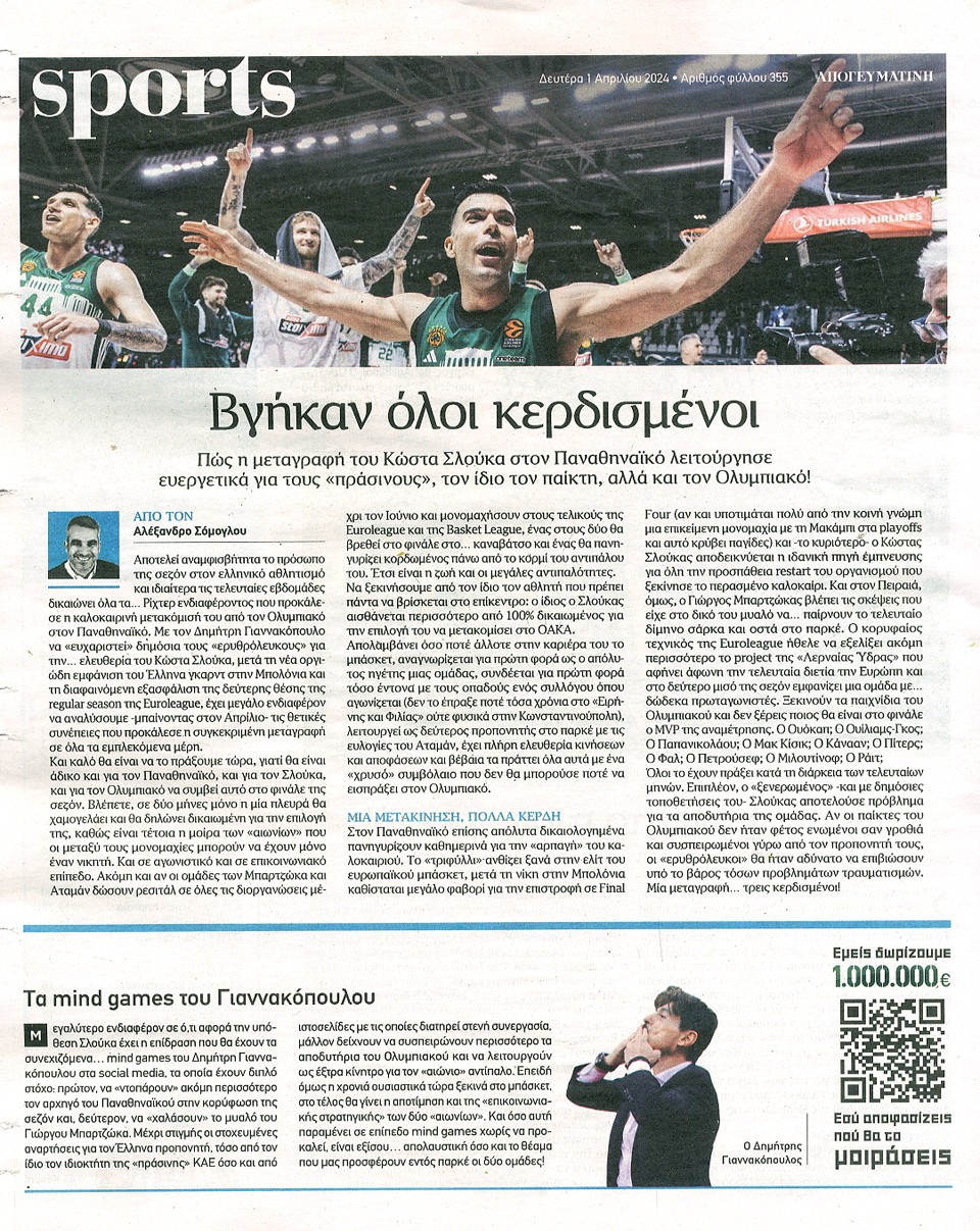 ΑΠΟΓΕΥΜΑΤΙΝΗ - 01 Απριλίου 2024
