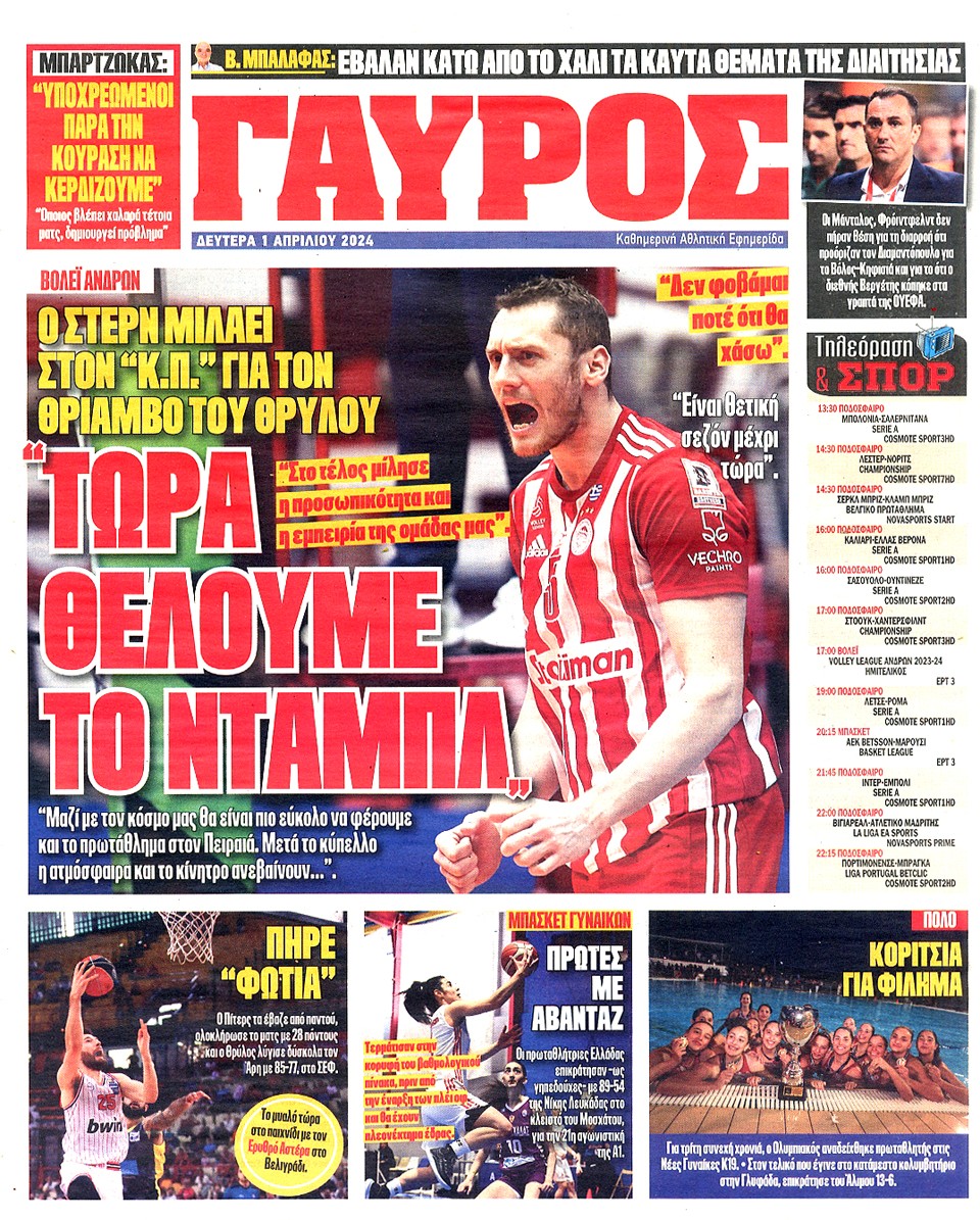 ΠΡΩΤΑΘΛΗΤΗΣ - 01 Απριλίου 2024