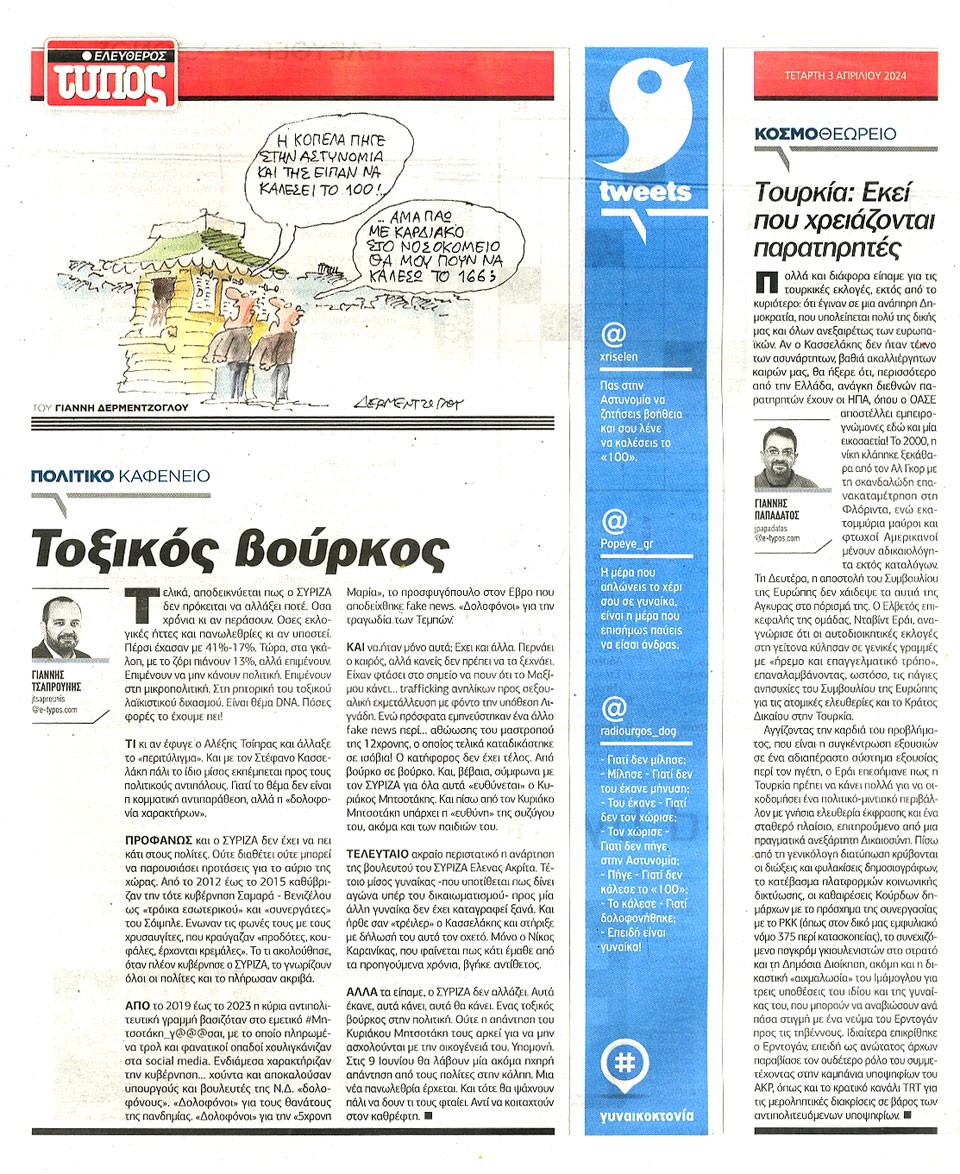 ΕΛΕΥΘΕΡΟΣ ΤΥΠΟΣ - 03 Απριλίου 2024