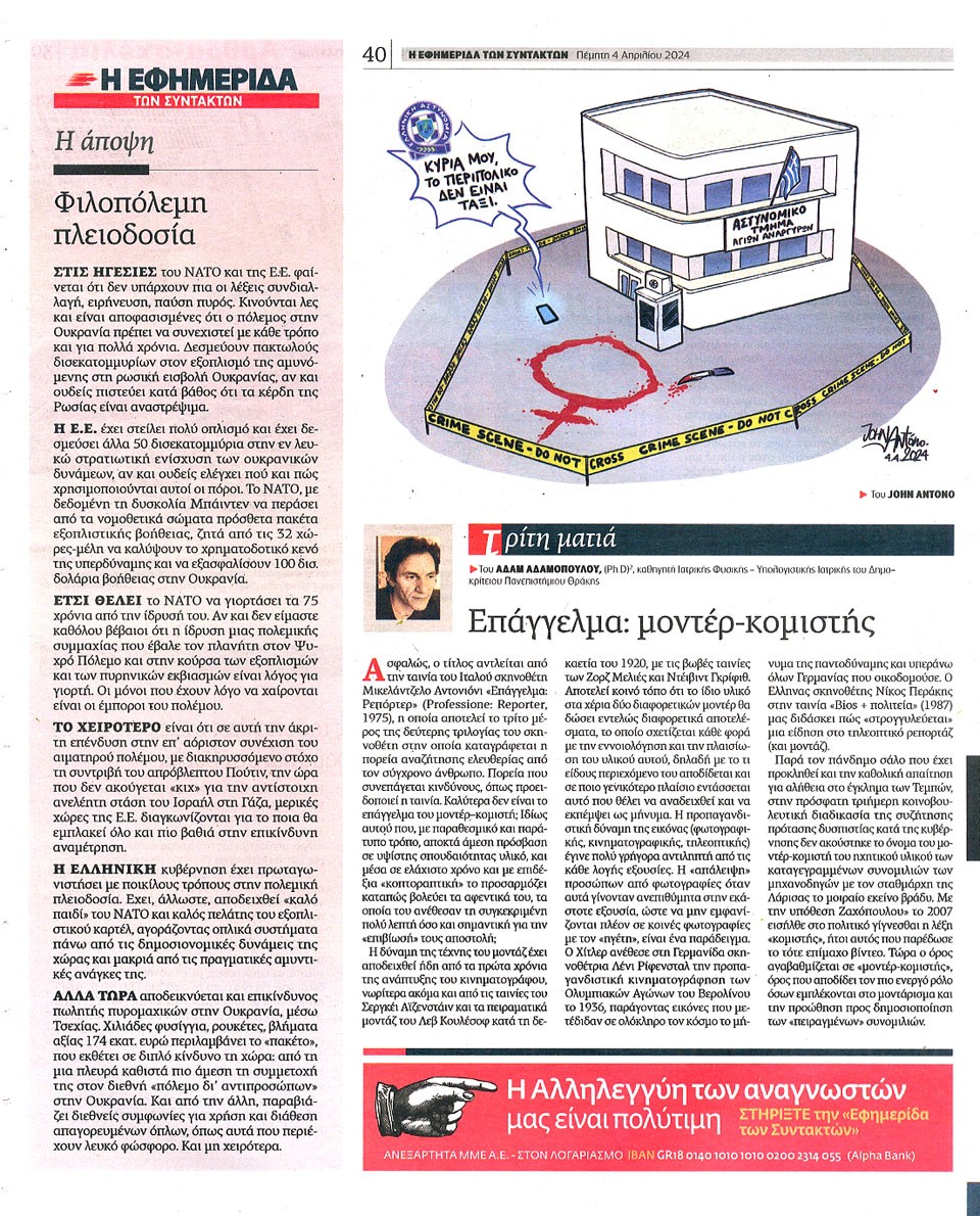 Η ΕΦΗΜΕΡΙΔΑ ΤΩΝ ΣΥΝΤΑΚΤΩΝ - 04 Απριλίου 2024