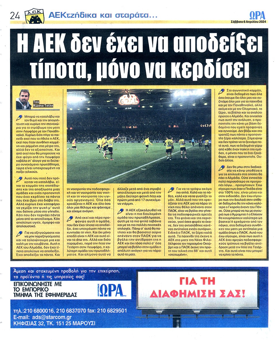 ΑΘΛΗΤΙΚΗ ΩΡΑ ΤΩΝ ΣΠΟΡ - 06 Απριλίου 2024