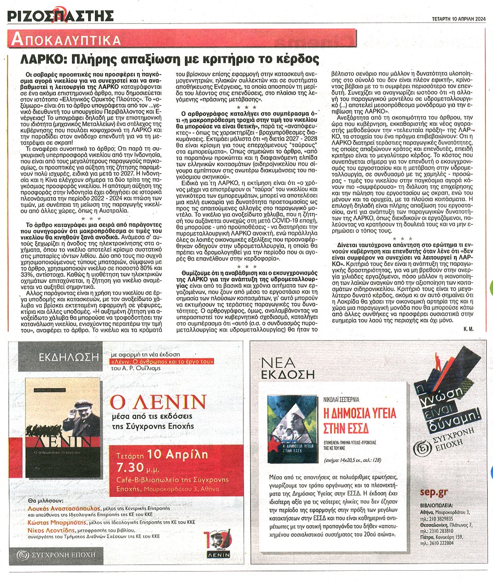 ΡΙΖΟΣΠΑΣΤΗΣ - 10 Απριλίου 2024