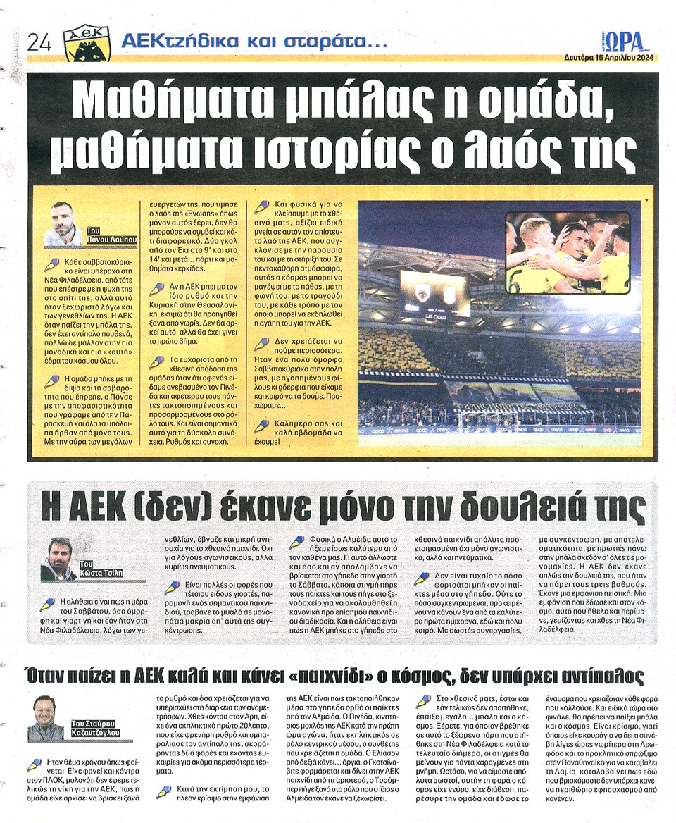 ΑΘΛΗΤΙΚΗ ΩΡΑ ΤΩΝ ΣΠΟΡ - 15 Απριλίου 2024