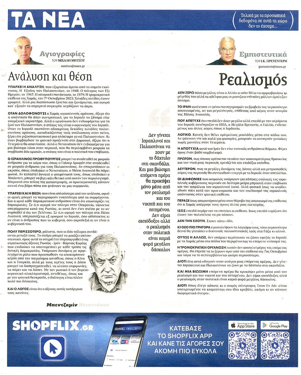 ΤΑ ΝΕΑ - 15 Απριλίου 2024