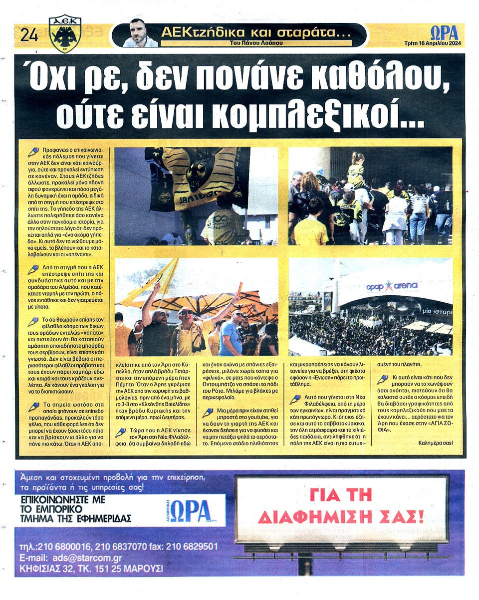 ΑΘΛΗΤΙΚΗ ΩΡΑ ΤΩΝ ΣΠΟΡ - 16 Απριλίου 2024
