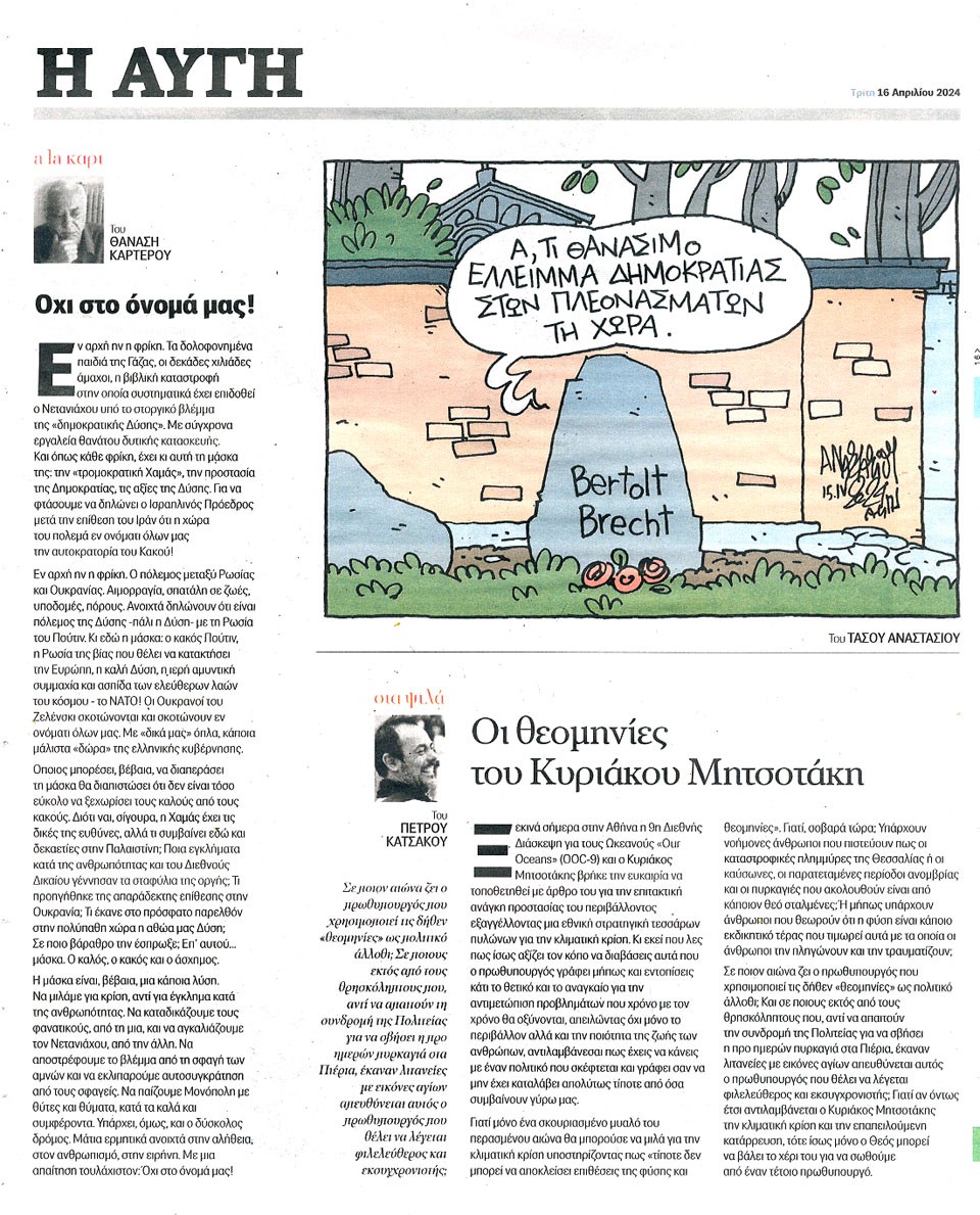 Η ΑΥΓΗ - 16 Απριλίου 2024