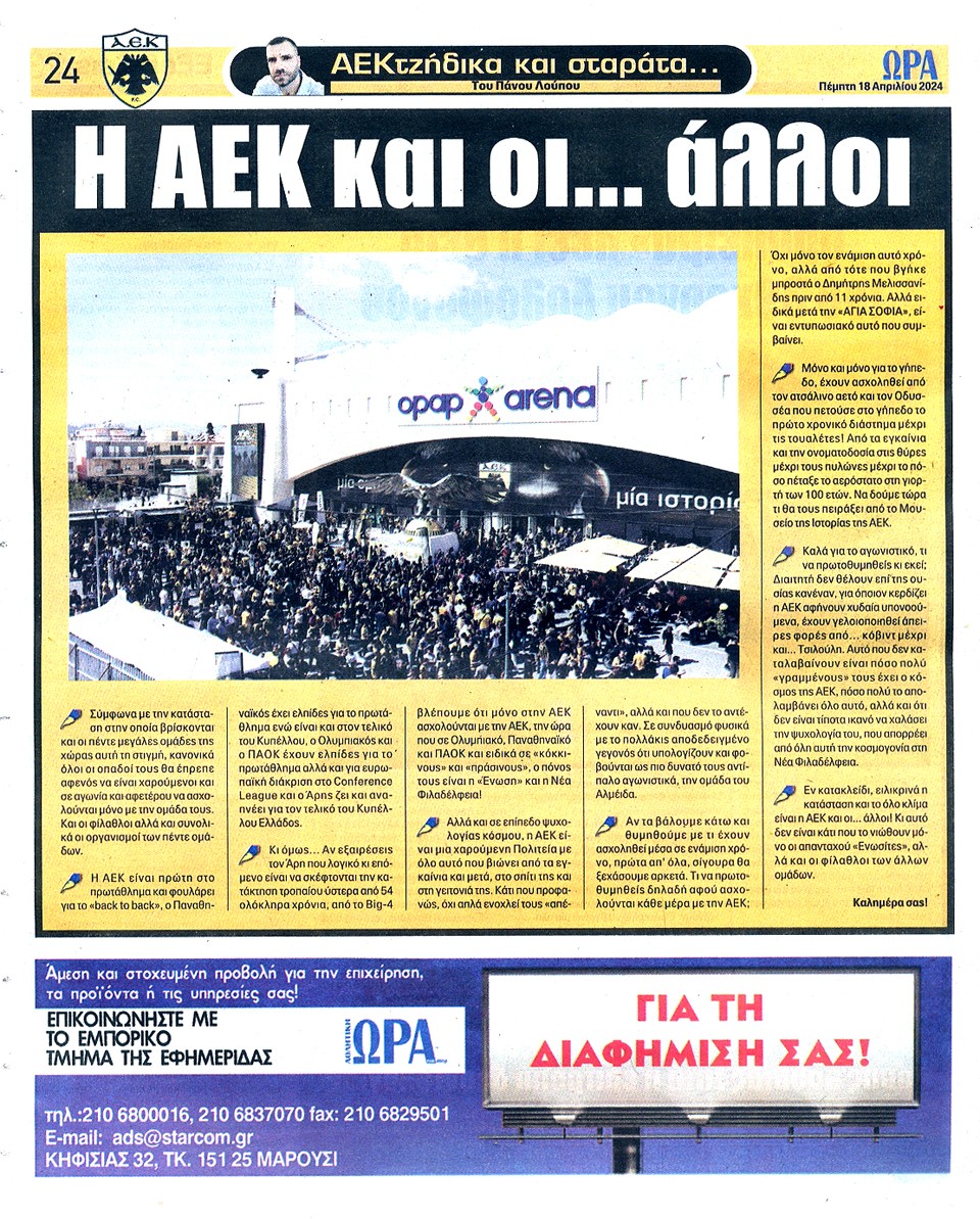 ΑΘΛΗΤΙΚΗ ΩΡΑ ΤΩΝ ΣΠΟΡ - 18 Απριλίου 2024