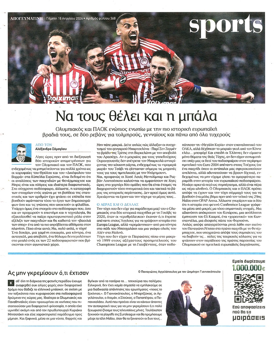 ΑΠΟΓΕΥΜΑΤΙΝΗ - 18 Απριλίου 2024