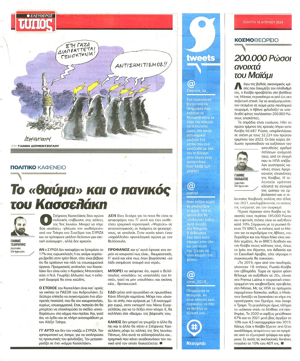 ΕΛΕΥΘΕΡΟΣ ΤΥΠΟΣ - 18 Απριλίου 2024