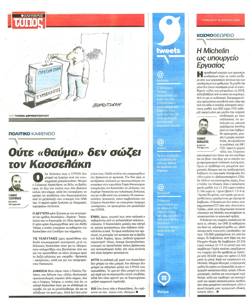 ΕΛΕΥΘΕΡΟΣ ΤΥΠΟΣ - 19 Απριλίου 2024
