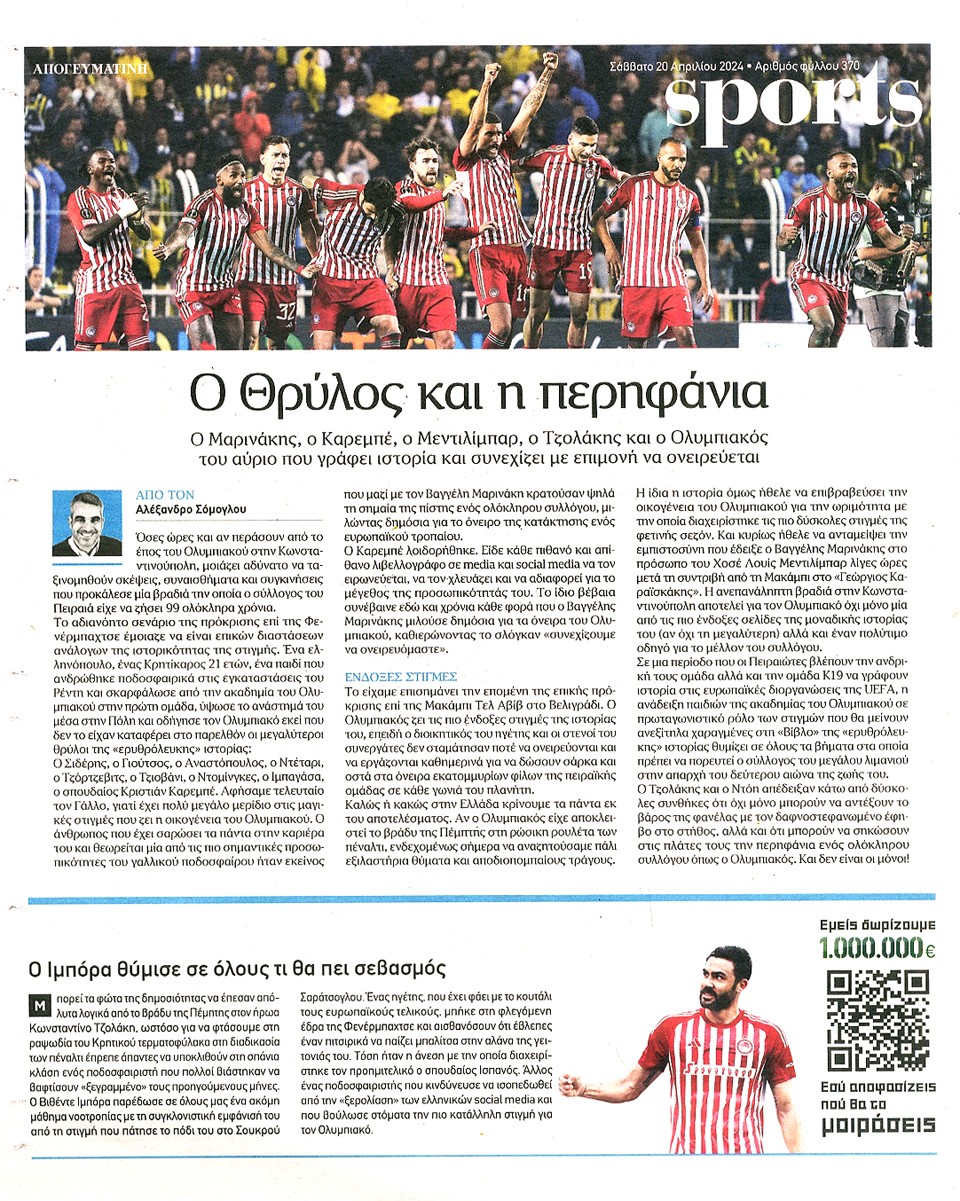 ΑΠΟΓΕΥΜΑΤΙΝΗ - 20 Απριλίου 2024