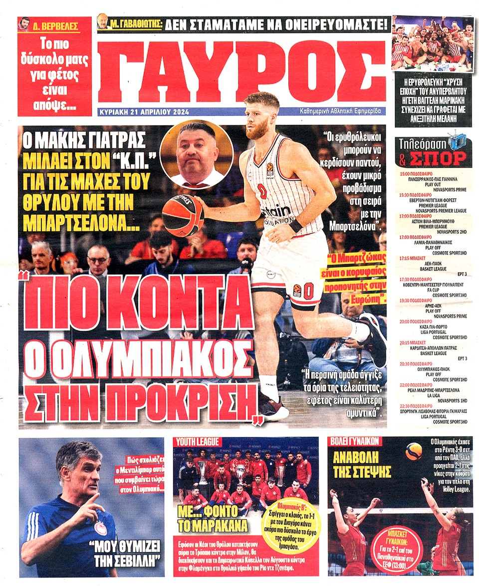 ΠΡΩΤΑΘΛΗΤΗΣ - 21 Απριλίου 2024