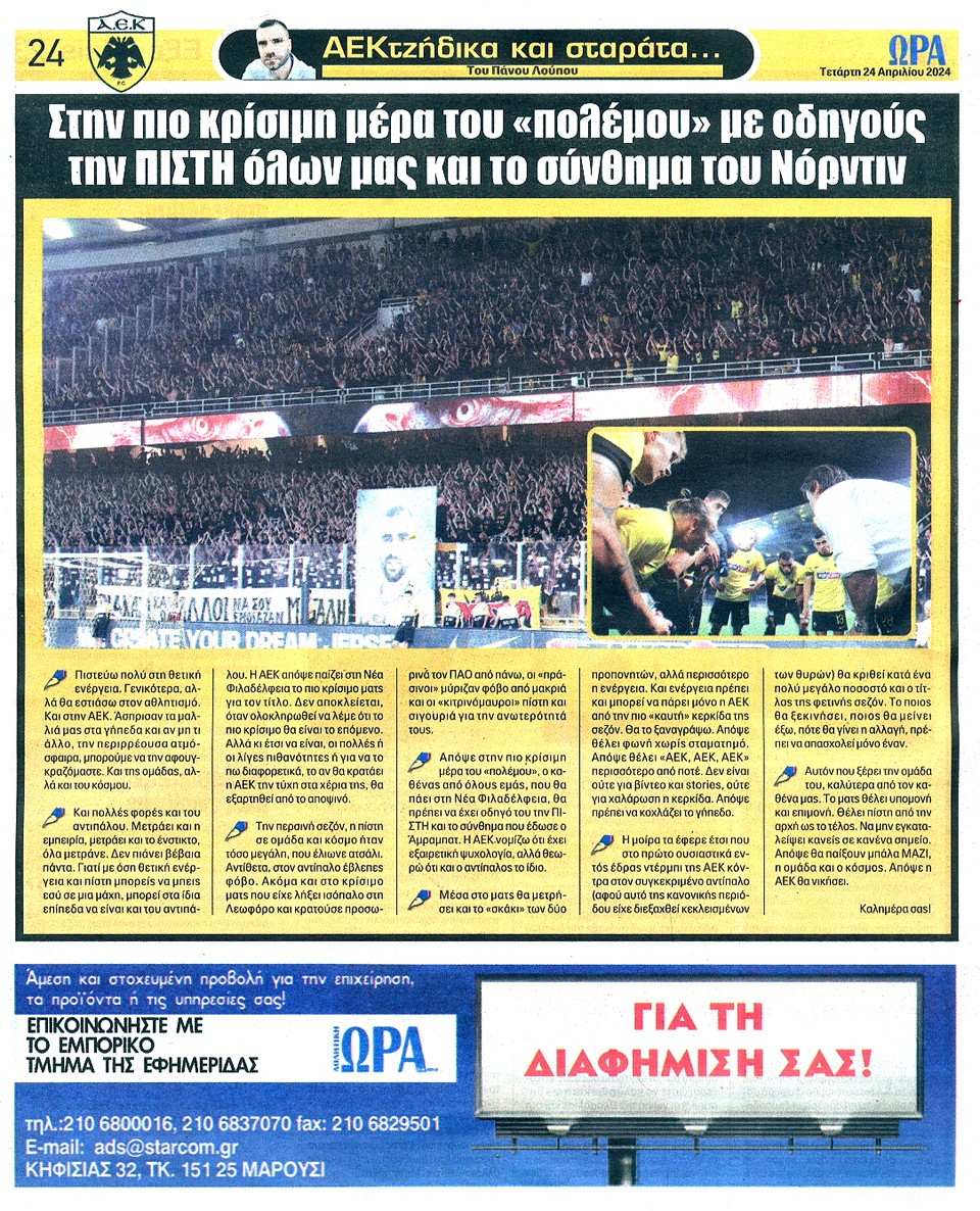 ΑΘΛΗΤΙΚΗ ΩΡΑ ΤΩΝ ΣΠΟΡ - 24 Απριλίου 2024