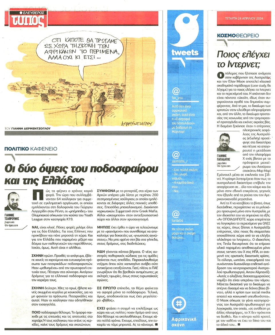 ΕΛΕΥΘΕΡΟΣ ΤΥΠΟΣ - 24 Απριλίου 2024