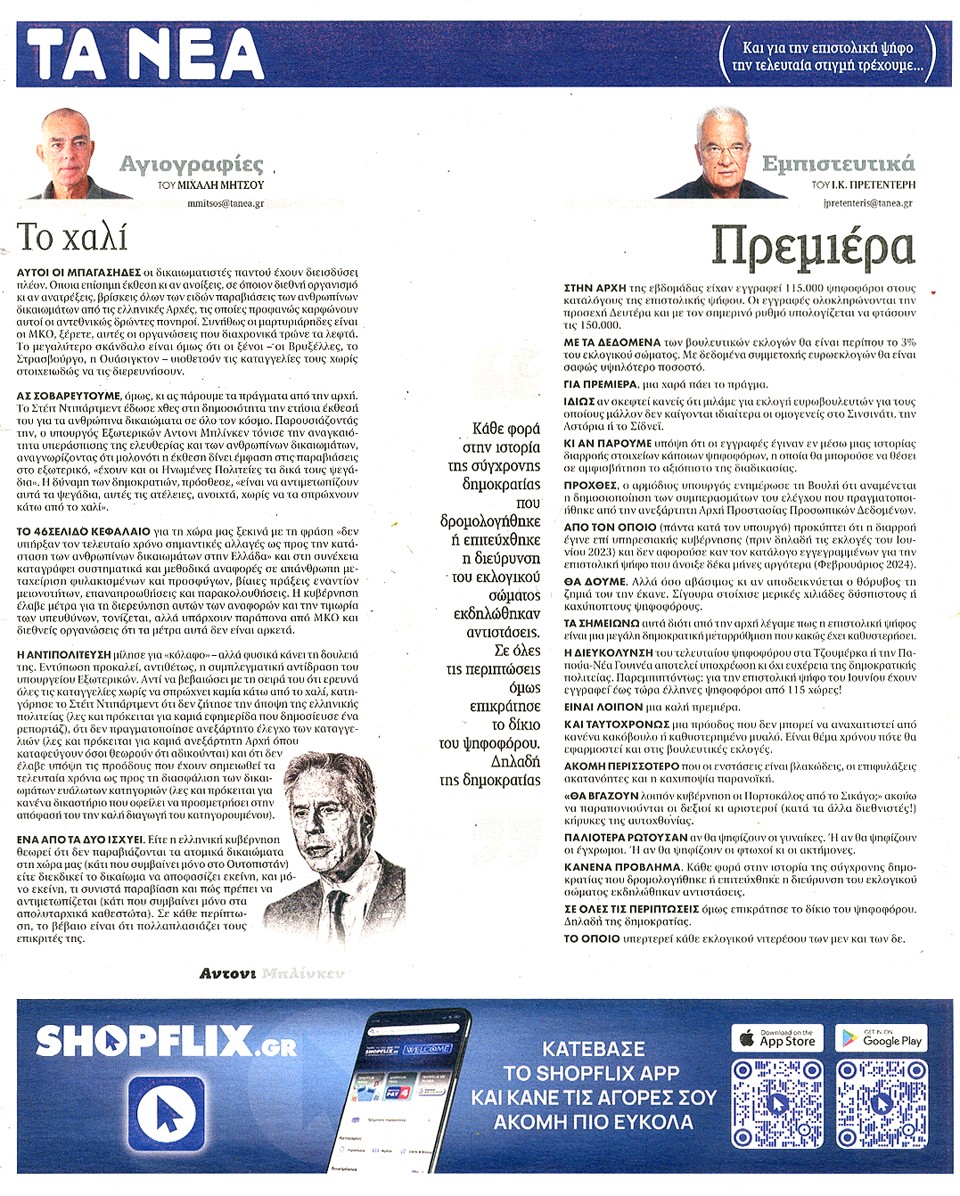 ΤΑ ΝΕΑ - 24 Απριλίου 2024