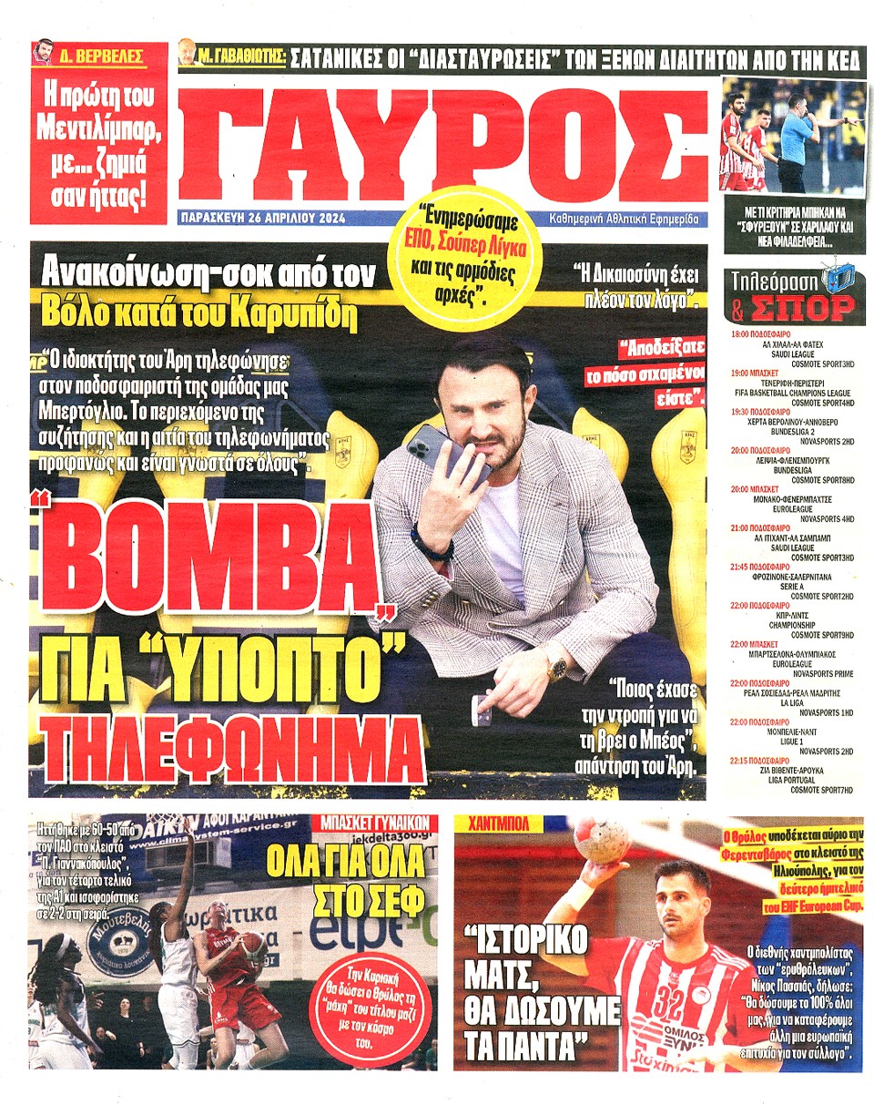 ΠΡΩΤΑΘΛΗΤΗΣ - 26 Απριλίου 2024