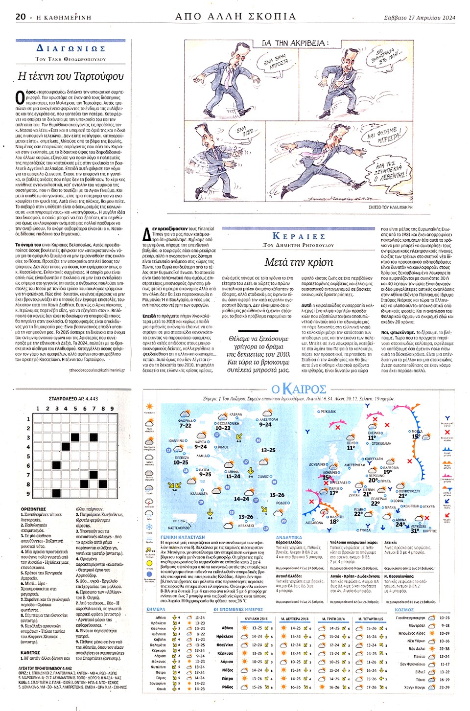 ΚΑΘΗΜΕΡΙΝΗ - 27 Απριλίου 2024