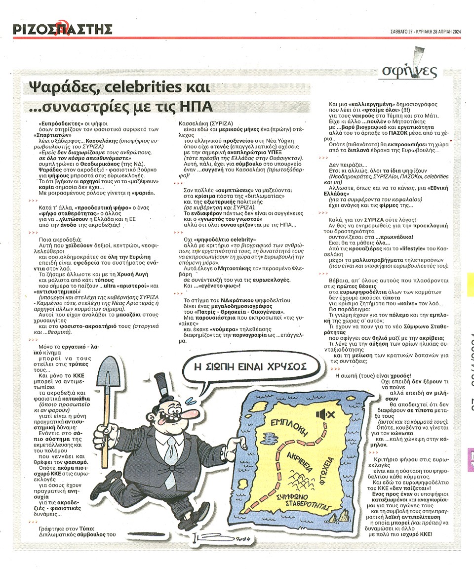 ΡΙΖΟΣΠΑΣΤΗΣ ΤΗΣ ΚΥΡΙΑΚΗΣ - 27 Απριλίου 2024