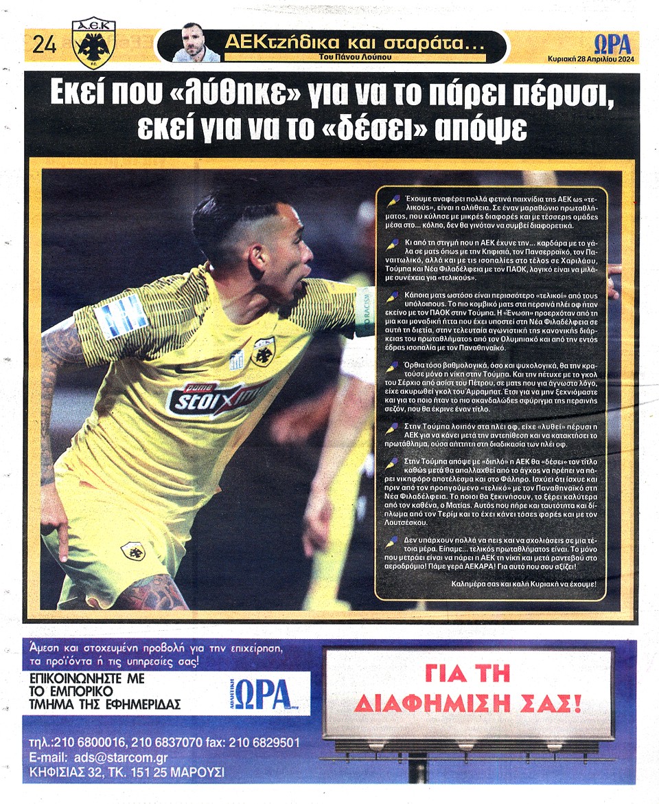 ΑΘΛΗΤΙΚΗ ΩΡΑ ΤΩΝ ΣΠΟΡ - 28 Απριλίου 2024