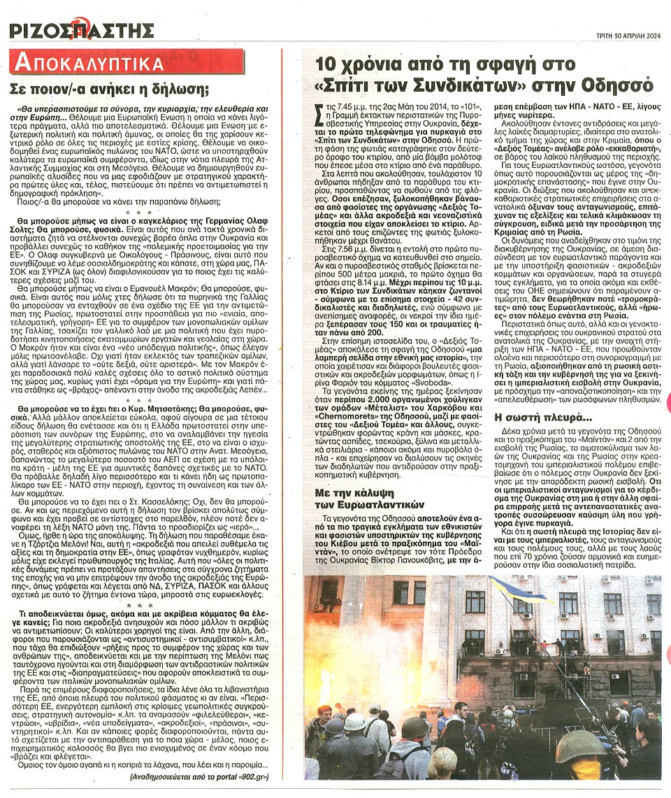 ΡΙΖΟΣΠΑΣΤΗΣ - 30 Απριλίου 2024