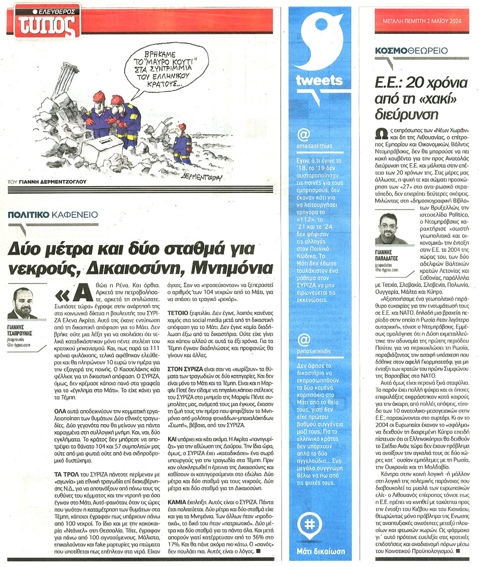 ΕΛΕΥΘΕΡΟΣ ΤΥΠΟΣ - 02 Μαΐου 2024