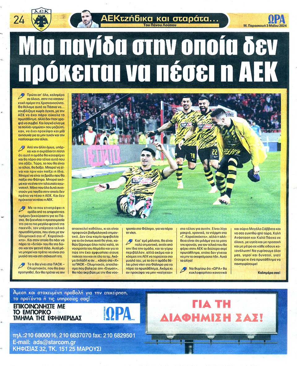 ΑΘΛΗΤΙΚΗ ΩΡΑ ΤΩΝ ΣΠΟΡ - 03 Μαΐου 2024