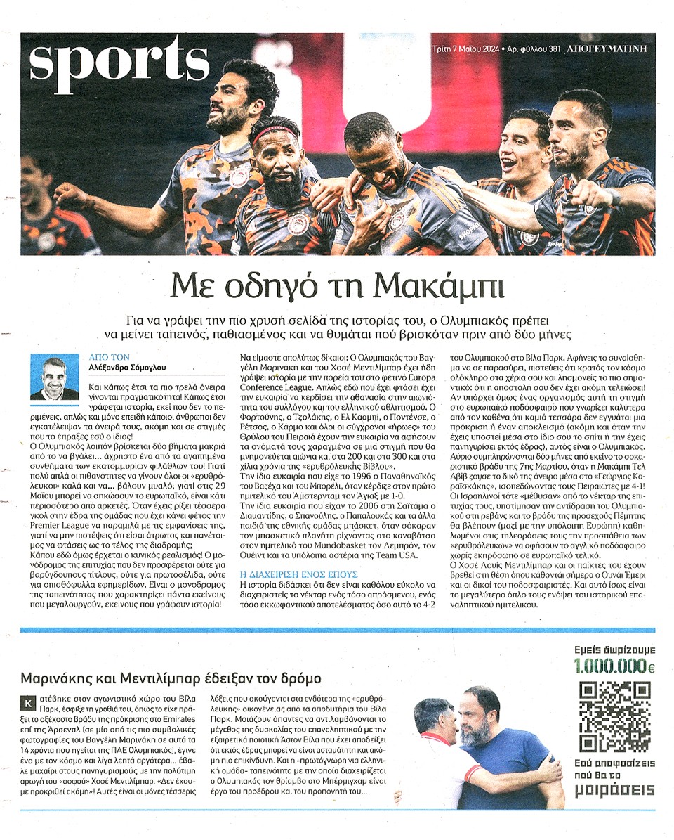 ΑΠΟΓΕΥΜΑΤΙΝΗ - 07 Μαΐου 2024