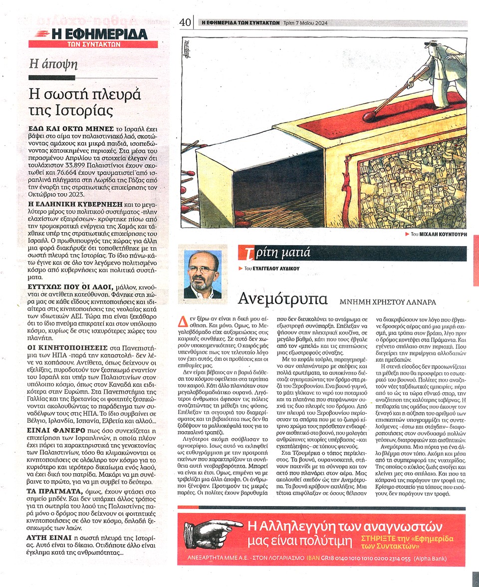 Η ΕΦΗΜΕΡΙΔΑ ΤΩΝ ΣΥΝΤΑΚΤΩΝ - 07 Μαΐου 2024