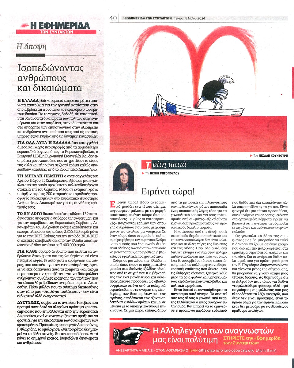 Η ΕΦΗΜΕΡΙΔΑ ΤΩΝ ΣΥΝΤΑΚΤΩΝ - 08 Μαΐου 2024