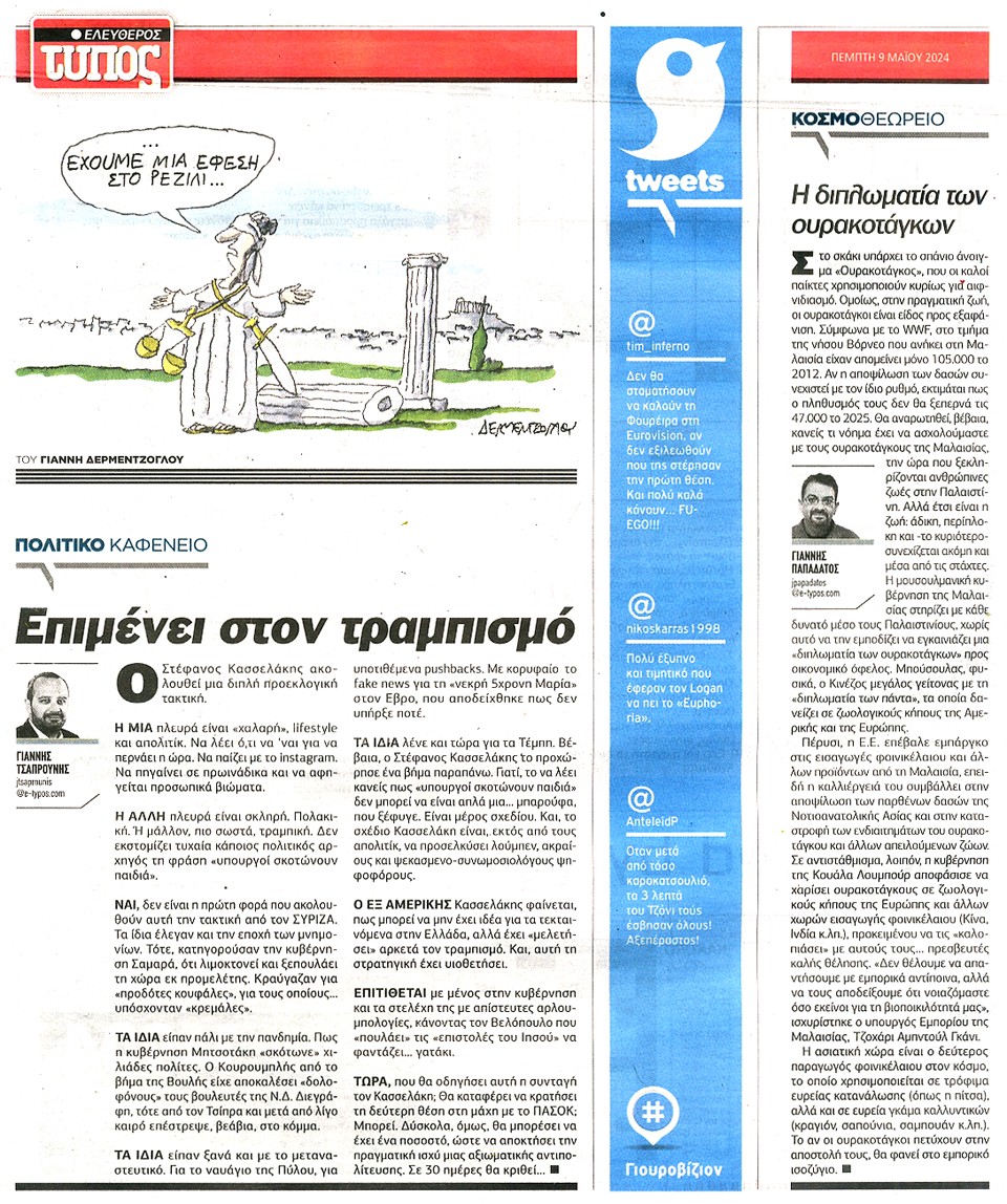 ΕΛΕΥΘΕΡΟΣ ΤΥΠΟΣ - 09 Μαΐου 2024