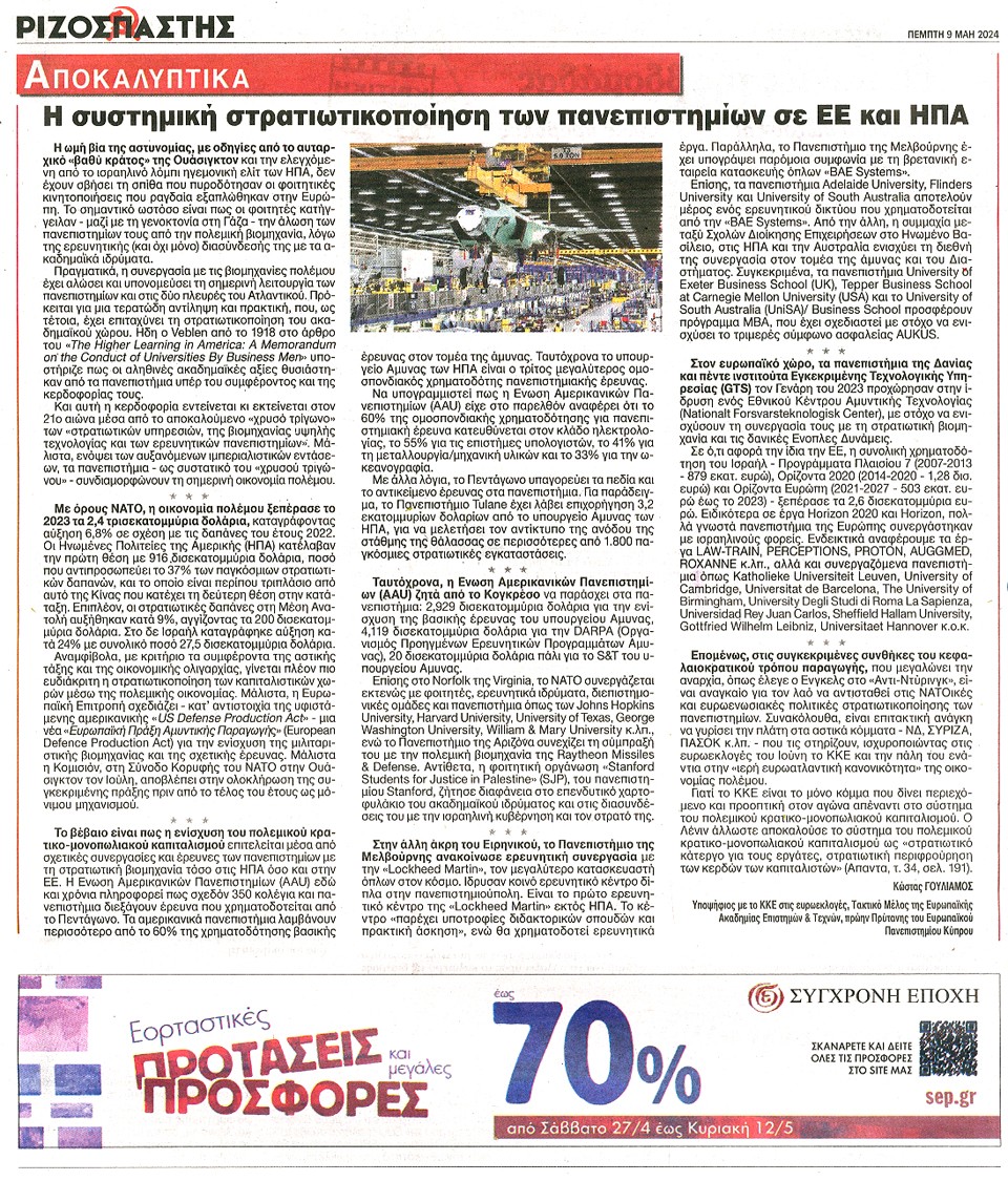 ΡΙΖΟΣΠΑΣΤΗΣ - 09 Μαΐου 2024