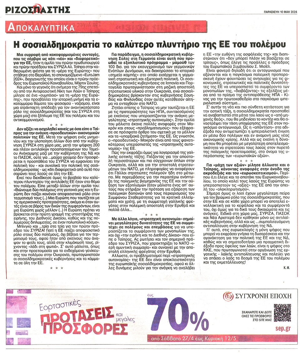 ΡΙΖΟΣΠΑΣΤΗΣ - 10 Μαΐου 2024