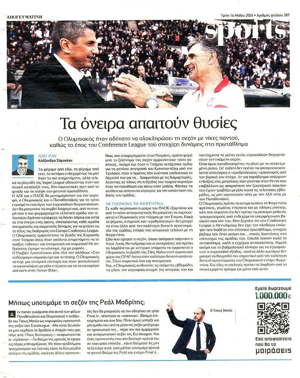 ΑΠΟΓΕΥΜΑΤΙΝΗ - 14 Μαΐου 2024