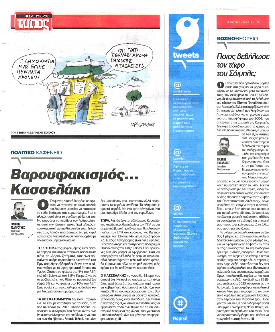 ΕΛΕΥΘΕΡΟΣ ΤΥΠΟΣ - 15 Μαΐου 2024