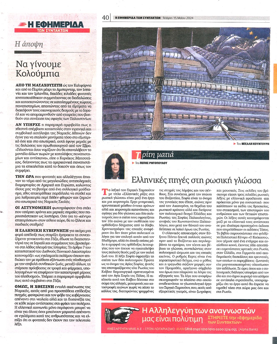Η ΕΦΗΜΕΡΙΔΑ ΤΩΝ ΣΥΝΤΑΚΤΩΝ - 15 Μαΐου 2024