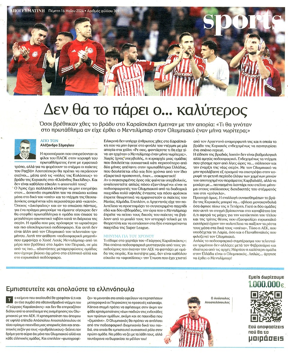 ΑΠΟΓΕΥΜΑΤΙΝΗ - 16 Μαΐου 2024
