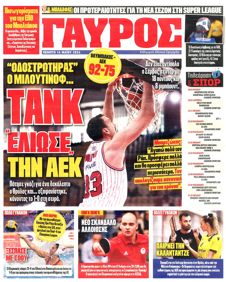 ΠΡΩΤΑΘΛΗΤΗΣ - 16 Μαΐου 2024