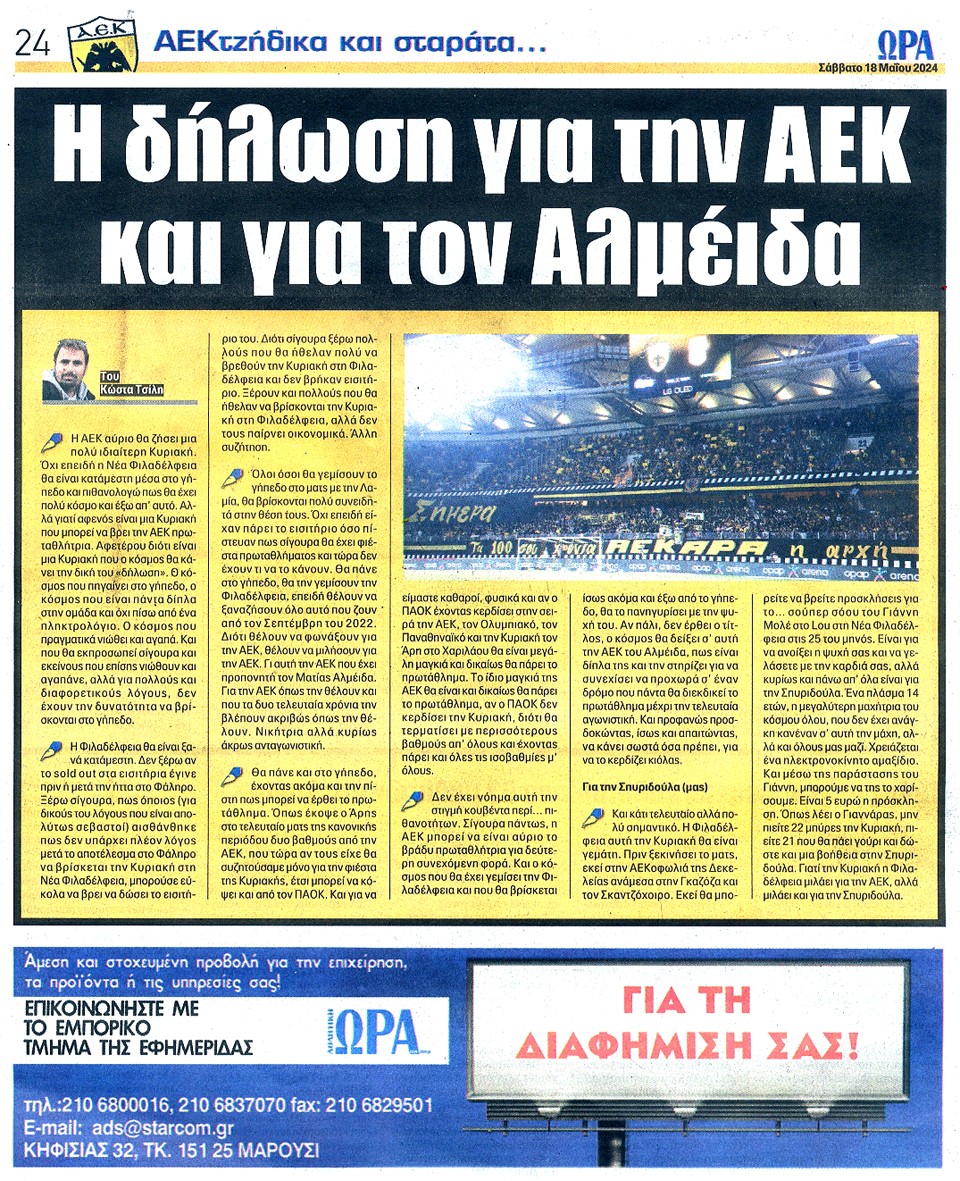 ΑΘΛΗΤΙΚΗ ΩΡΑ ΤΩΝ ΣΠΟΡ - 18 Μαΐου 2024