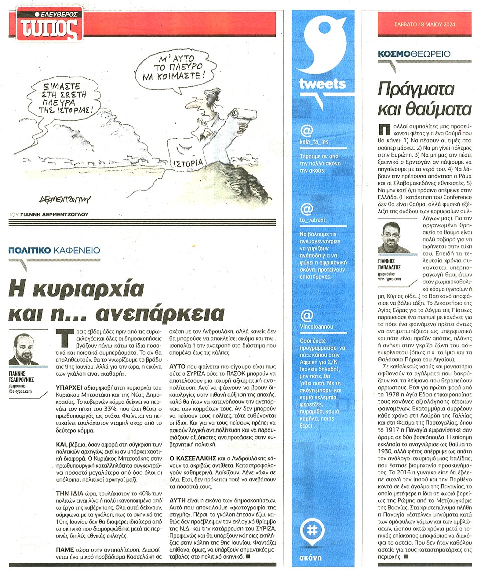 ΕΛΕΥΘΕΡΟΣ ΤΥΠΟΣ - 18 Μαΐου 2024