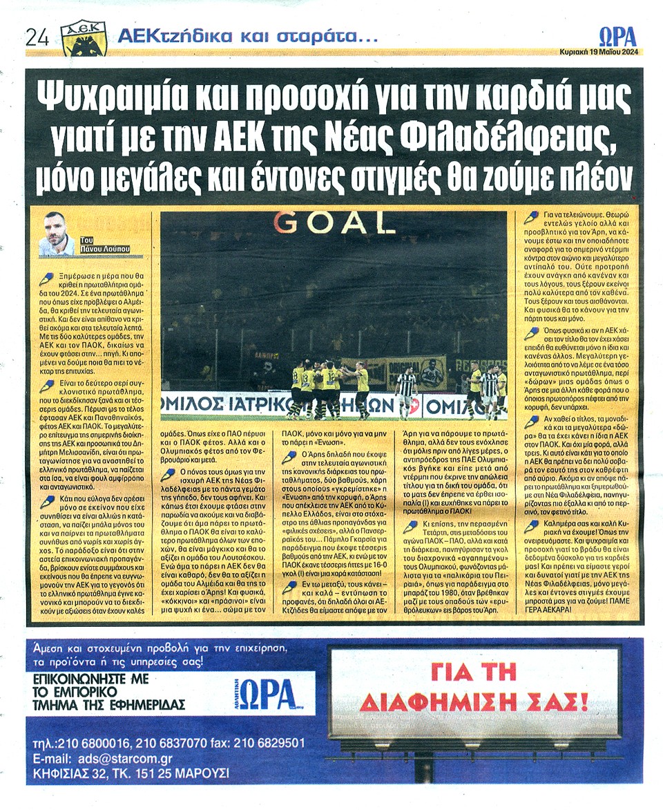 ΑΘΛΗΤΙΚΗ ΩΡΑ ΤΩΝ ΣΠΟΡ - 19 Μαΐου 2024
