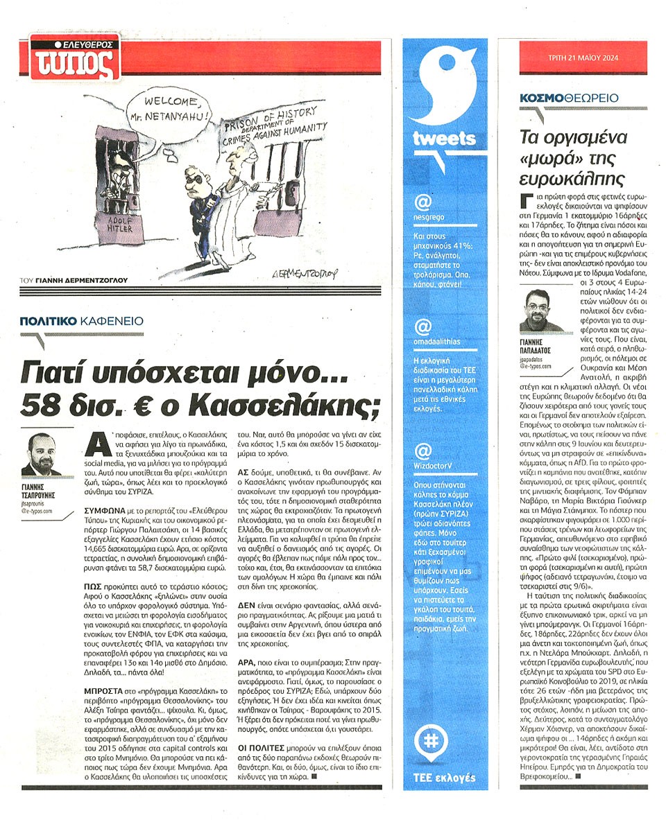 ΕΛΕΥΘΕΡΟΣ ΤΥΠΟΣ - 21 Μαΐου 2024
