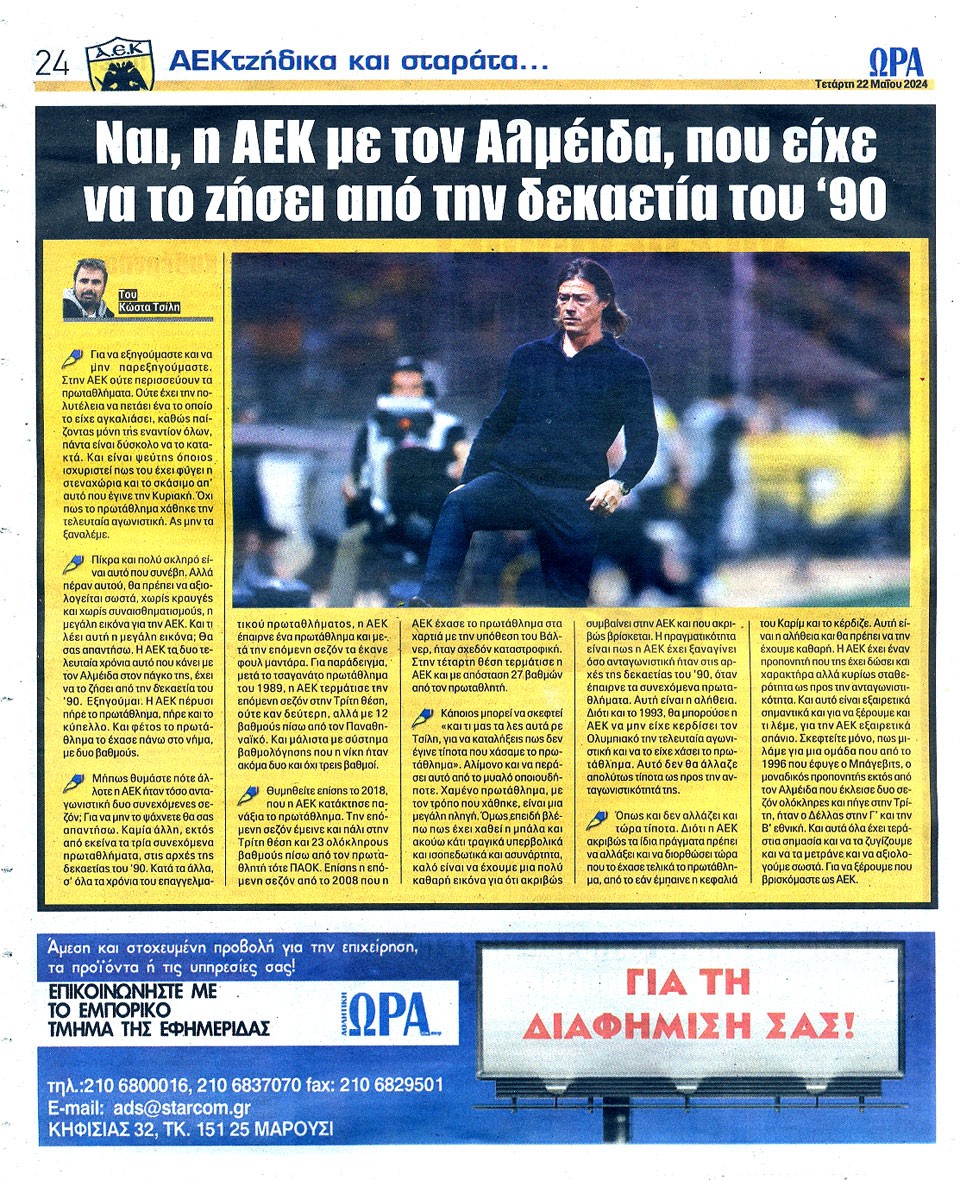 ΑΘΛΗΤΙΚΗ ΩΡΑ ΤΩΝ ΣΠΟΡ - 22 Μαΐου 2024