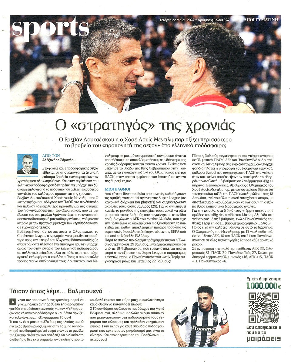 ΑΠΟΓΕΥΜΑΤΙΝΗ - 22 Μαΐου 2024