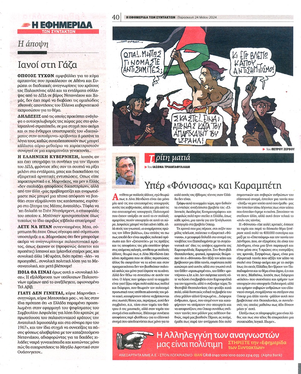 Η ΕΦΗΜΕΡΙΔΑ ΤΩΝ ΣΥΝΤΑΚΤΩΝ - 24 Μαΐου 2024