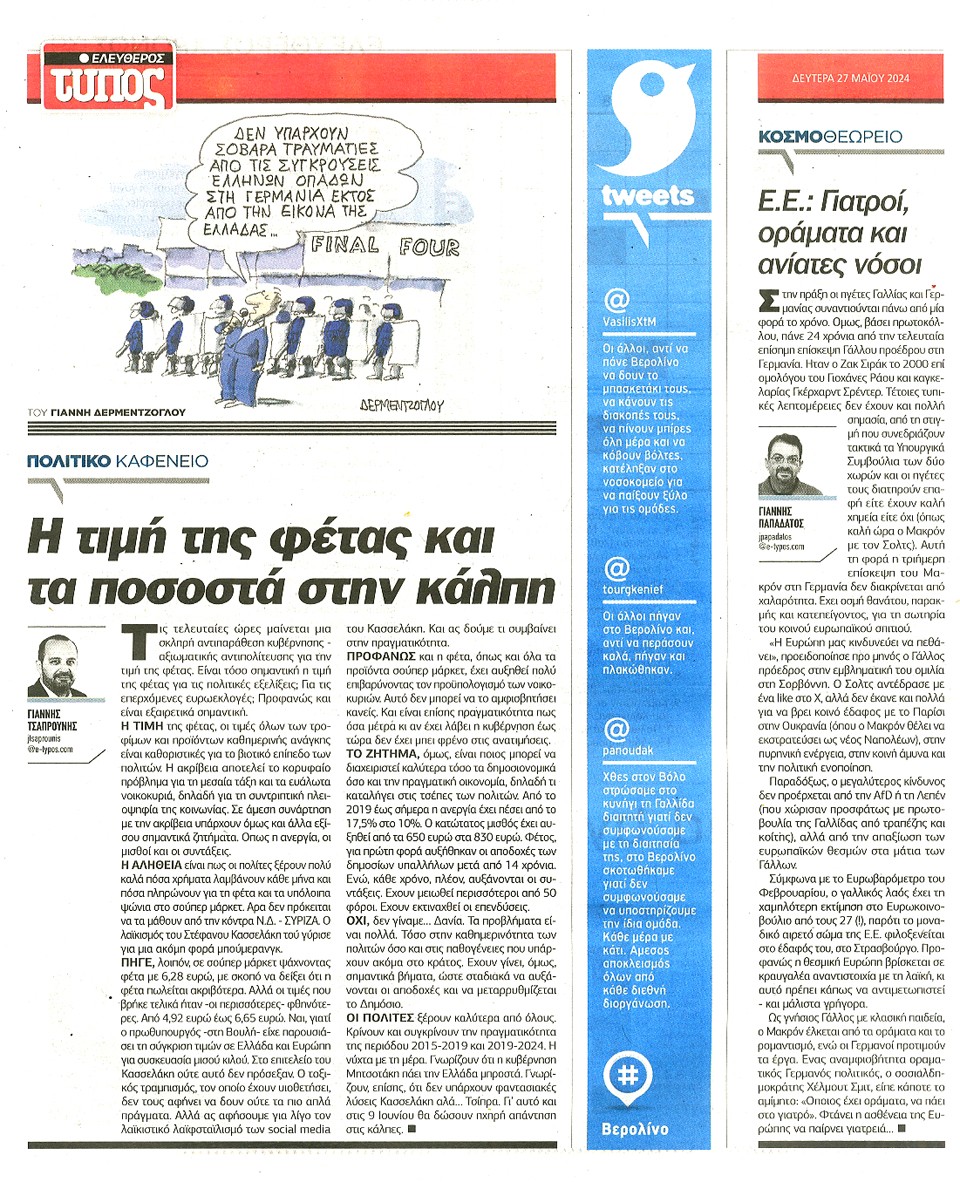 ΕΛΕΥΘΕΡΟΣ ΤΥΠΟΣ - 27 Μαΐου 2024