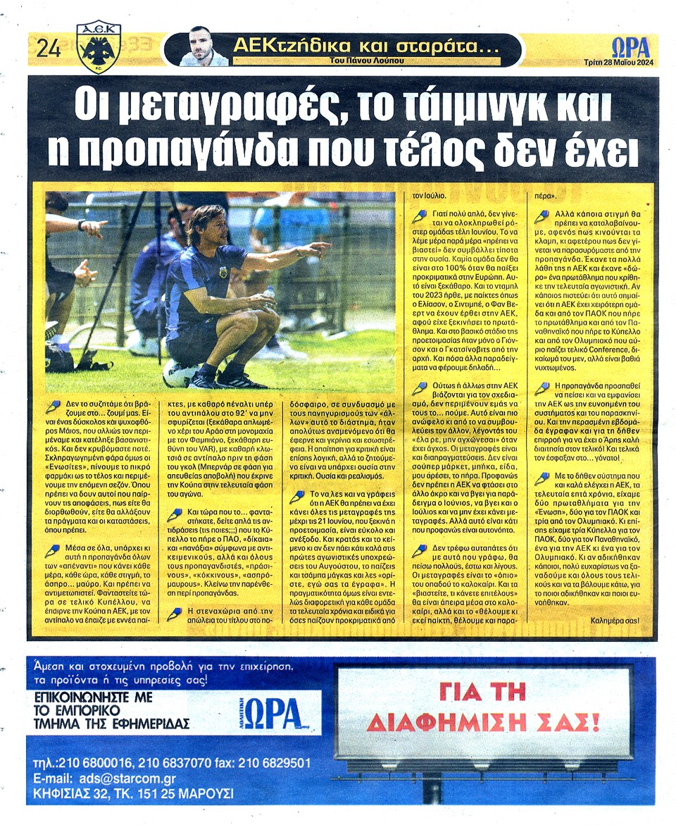 ΑΘΛΗΤΙΚΗ ΩΡΑ ΤΩΝ ΣΠΟΡ - 28 Μαΐου 2024