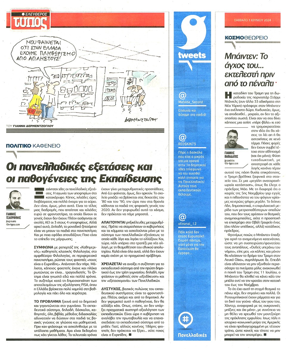ΕΛΕΥΘΕΡΟΣ ΤΥΠΟΣ - 01 Ιουνίου 2024