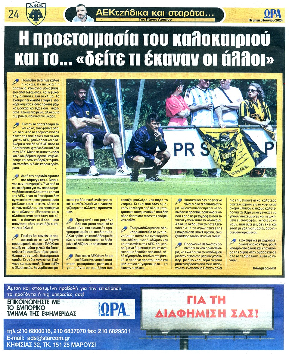 ΑΘΛΗΤΙΚΗ ΩΡΑ ΤΩΝ ΣΠΟΡ - 06 Ιουνίου 2024