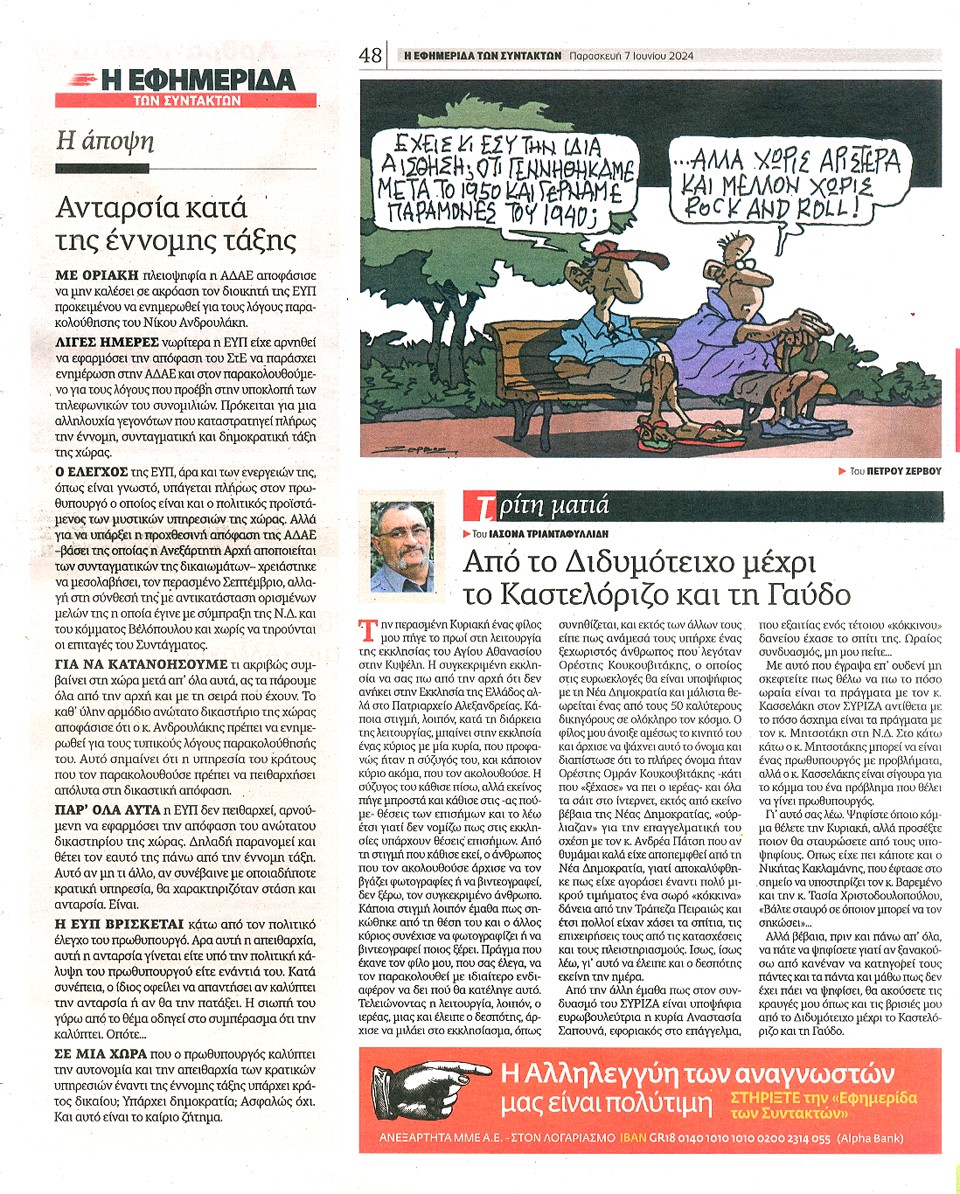 Η ΕΦΗΜΕΡΙΔΑ ΤΩΝ ΣΥΝΤΑΚΤΩΝ - 07 Ιουνίου 2024