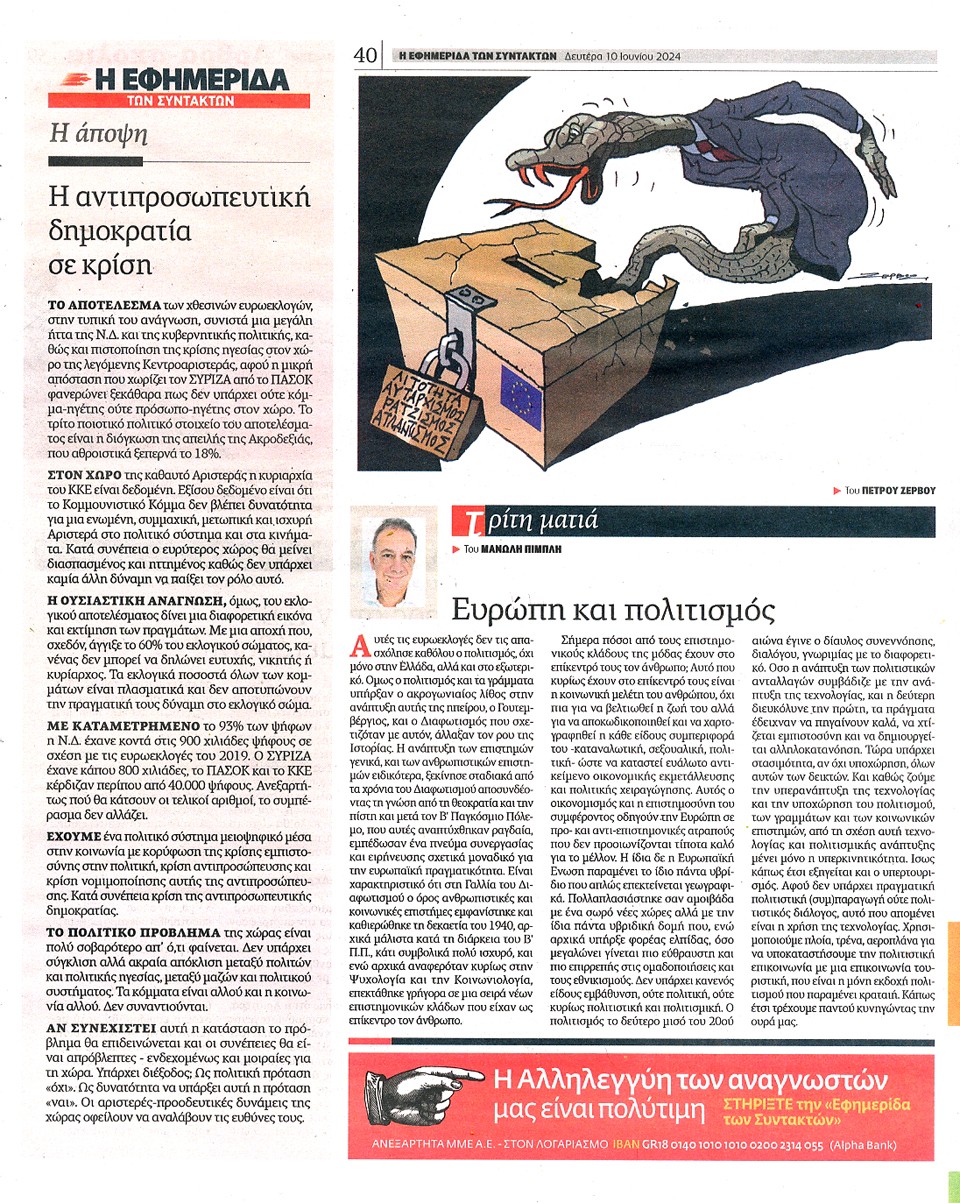 Η ΕΦΗΜΕΡΙΔΑ ΤΩΝ ΣΥΝΤΑΚΤΩΝ - 10 Ιουνίου 2024